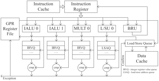 - Holm, J.G.; Banerjee, P. Low Cost Concurrent Error Detection in a VLIW Architecture Using Replicated Instructions. In Proceedings of the International Conference on Parallel Processing, An Arbor, MI, USA, 17–21 August 1992. [Google Scholar]