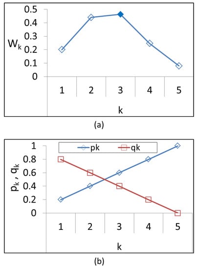 This was the odds algorithm. Its visualization will be presented here to highlight one interesting factor. Consider 5 values each having probability of 0.2 such that if you add these 5 probabilities, you will get 1. The visualization of element of odds algorithm is shown in Figure 3a, where the x-axis represents 5 values. Figure 3a shows that there is a point (at 3rd element) that gives the maximum winning probability (). Interestingly, there is only 1 maximum winning probability in the odds algorithm. This will be proved in the next subsection in which odds algorithm will be applied on two examples. This is the unique working procedure of the odds algorithm. On the other hand, if one evaluates these values (0.2) one by one, then will increase because it shows probability of success and will decrease as it shows probability of failure. This process is also shown in Figure 3b. In the coming subsection, detail analysis of odds algorithm will be performed and then it will be mapped to the intra process of HEVC.