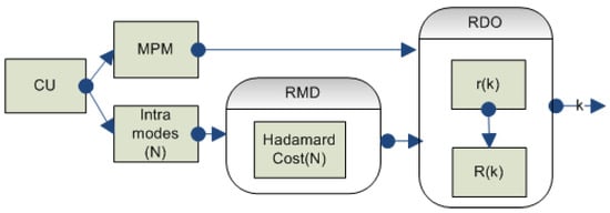 - Junaid, T.; Kwong, S.; Yuan, H. HEVC intra mode selection based on rate distortion (RD) cost and sum of absolute difference (SAD). J. Visual Commun. Image Represent. 2016, 35, 112–119. [Google Scholar]