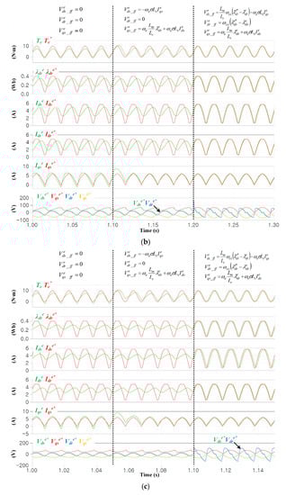 For the comparative study with the conventional control methods, the simulation tests were performed in three control modes. In the first control mode, no feed-forwarding compensation term was applied [23]. As shown in Figure 4, only three PI controllers were used and the PI gains were set as (17), (18), (23), and (24).