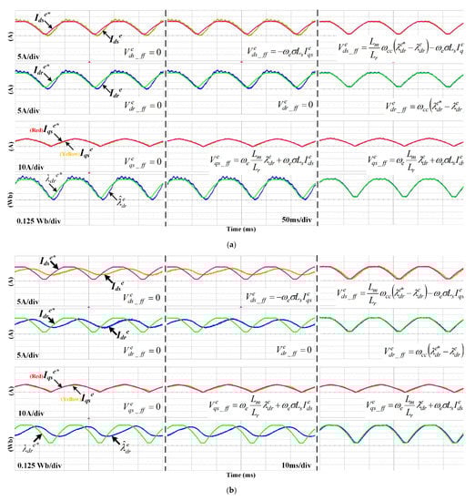 The feed-forwarding components of (14)–(16) can be classified into two types. The first is the voltage drop component proportional to the synchronization frequency, which causes the coupling interferences between the stator d-axis and q-axis current controllers. Under the assumption that the change of the mechanical rotation speed is sufficiently slower than the bandwidth of the current controller, these components can be obtained from the measured currents and speed, which is usually applied in the case of IM [29].