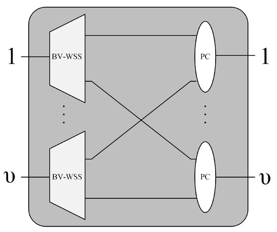 A second stage switch. BV-WSS—bandwidth variable wavelength selective switch; PC—passive combiner.