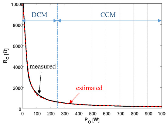 Due to the CCM assumption, the output of the algorithm in Figure 4 would be given by the first row of (32) for all of the load levels. Consequently, in order to estimate the value of RO in DCM, an additional action is applied on the output of (14) in Figure 4 according to (33) to obtain the final estimate as