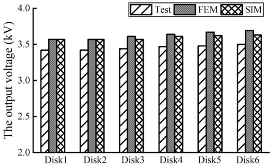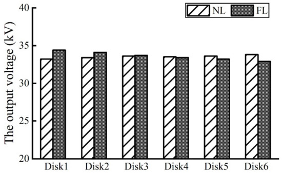 Increasing the number of secondary winding turns is commonly used to ensure that the disks’ output voltage is as consistent as possible. To facilitate the description of the consistency of the disks’ output voltage, the concept of maximum non-uniformity is introduced. The maximum non-uniformity of the disks’ output voltage can be used to describe the distribution of the output voltage of all disks, indicating the possibility of high voltage breakdown. It can be defined as: