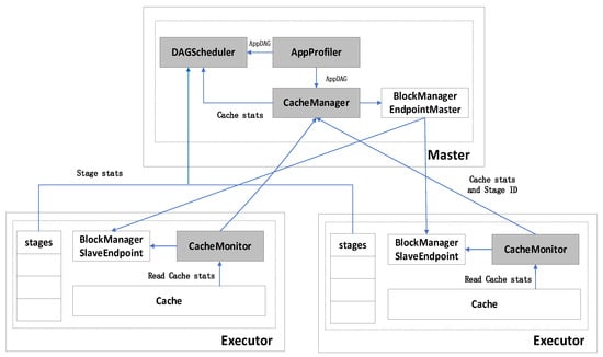 CacheManager. CacheManager is one of the key components of this architecture. It reconstructs the DAG of the application according to the information that is received from AppProfiler. CacheManager computes the cache urgency for each RDD according to LSF cache management policy. Furthermore, with the information that is collected by CacheMonitor deployed on the slave nodes, CacheManager is also responsible for the eviction and prefetching algorithm of the RDDs at runtime.