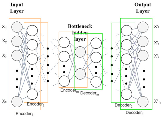 - Several hidden layers that represent multiple layers of encoding and decoding, as depicted in Figure 2, generating a non-linear representation of the input data, reconstructing the input to the output layer;