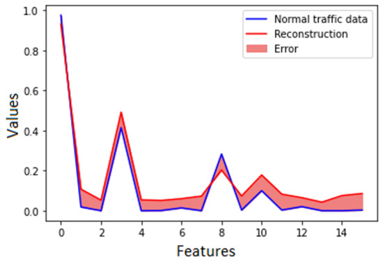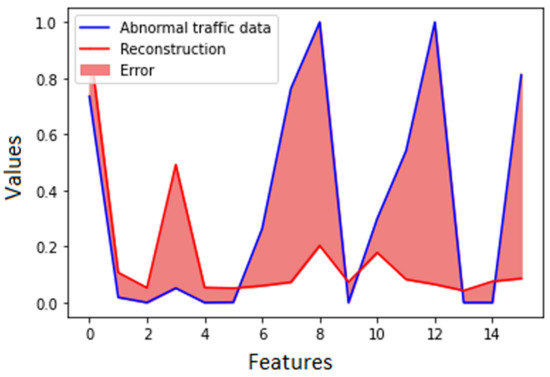 The loss values of the autoencoder’s predictions on normal traffic data were lower than the loss values obtained in abnormal traffic predictions. This can be observed in Figure 8.