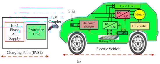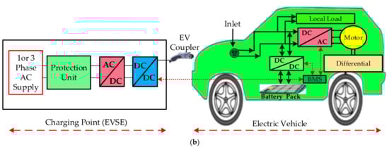 EV charger: (a) On-board charger arrangement of supply equipment, (b) Off-board charger arrangement of supply equipment.
