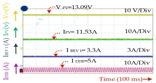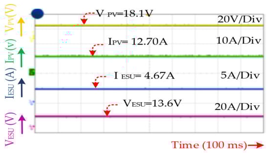 The type of charging station architecture depends on the control strategy of the DC link voltage control. The PV is connected to the charging station’s DC link voltage, which varies based on the irradiation on the PV panel. The reference DC bus voltages are chosen based on the different sun conditions from early morning to late evening. The overall control of RES-powered DC MG with a direct connection of ESU is presented in Table 5.