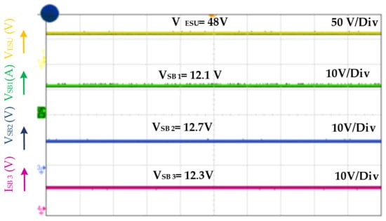 The microgrid with direct connections of ESU is the most common type of DC MG, frequently deployed in practical industrial applications. Based on the DC bus, the ESU, used as electrochemical battery stacks, is directly connected. However, the architecture creates dynamic stability, such as uncontrollable DC bus voltage, SOC, and current limitation []. It is most suitable for singular DC bus systems, however, creating practical problems like unregulated battery charging and inherent imperfections in bus voltage measurement.