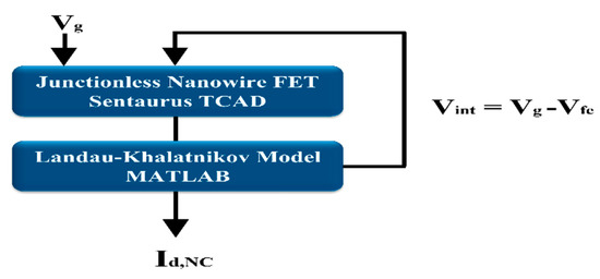 The TCAD values of Vg and MATLAB-extracted values of Vint are simulated, and the drain current (Id) of the NC-JL-NWFET is derived from TCAD. This simulation process is described in the flow chart shown in Figure 2.