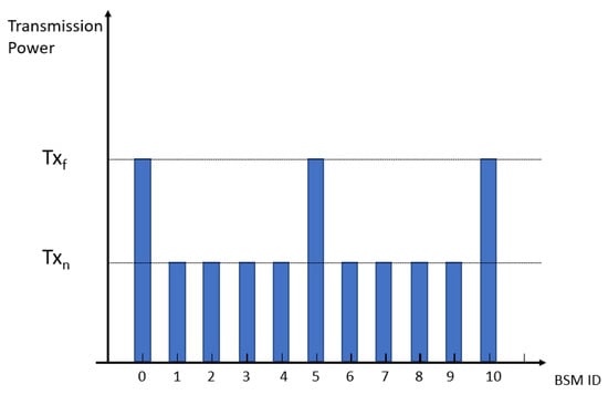 - The BSMs transmitted with high Tx power (), if ;