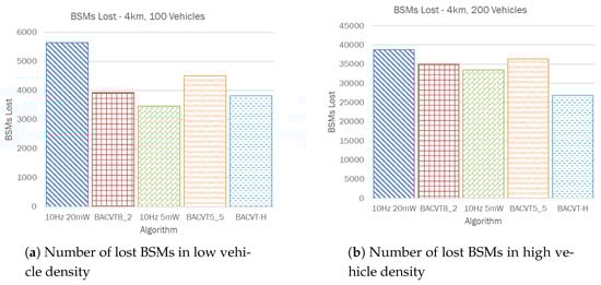 Number of lost BSMs in different vehicle densities.