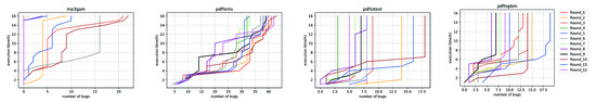 A crucial factor in evaluating a fuzzer’s performance is its ability to detect vulnerabilities. We configure ReFuzz to run three different experiments for 80 h with identical initial corpus by modifying et al. Table 2 describes the time for the initial stage and the exploration stage. In the first stage, the original AFL is applied without the additional test input format checking. Then, ReFuzz takes the input queue as the initial corpus for the second stage and uses an extra parameter to pass the expected input type to the target program, e.g., PDF.