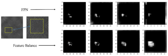 Comparison of balanced feature and FPN feature. The features after feature balance is strengthened, and the defect area is more obvious.