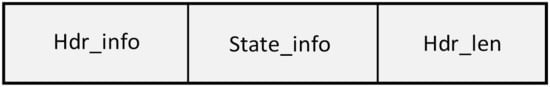 Additionally, to better record the state of the packet during the MA pipeline and deparsing, a custom data structure is proposed. As Figure 10 illustrates, Hdr_info is the extracted packet information. The State_info field is used to store the packet state, including to-host, drop, and forward, which can be modified in the follow-up MA logic. In particular, in the case that the state is set to be forward, the output port is also attached to the State_info field. Hdr_len shows the current length of the header information. Generally, the last two fields are just for the deparser to better recover each signal of the Avalon interface based on the state of the packet.