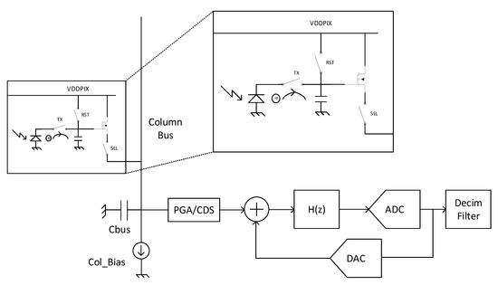 - Freitas, L.M.C.; Morgado-Dias, F. Column amplification stages in CMOS image sensors based on incremental sigma-delta ADCs. Microelectron. J. 2021, 113, 105055. [Google Scholar] [CrossRef]