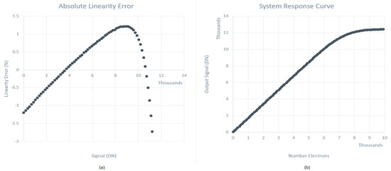 Furthermore, the converter INL is shown in Figure 10b, as part of the enhanced system verification. The absolute INL data provides evidence that the converter exhibits a non-linearity of 6 DN, namely a half-way value from −5 DN to +7 DN, concerning the lowest and highest points. This is an exceptional INL value for such a complex 14-bit converter system.