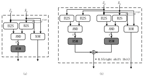 - For a numerical value , the bipolar format bit stream generation is required [4,11], where . The bipolar format bit stream generation could share a similar hardware architecture with unipolar format by comparing with the random number .