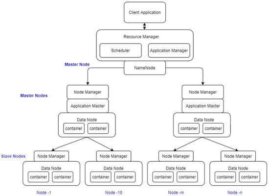 Big Data platforms are flexible in terms of data acquisition as it supports structured and unstructured data. In addition, big data platforms like Hadoop are also used for data integration, aggregation, representation, and query processing. Multiple tools are deployed in the Hadoop environment thereby the computational complexity is minimized and readily programmable. Huge volume of IoT network traffic records need to be processed and Hadoop server can send the files to the server and obtain the desirable result. The Hadoop ecosystem utilizes the pig tool to aggregate, MapReduce, join and filter the dataset tuples to produce an optimal result. Figure 3 shows a high-level application architecture design of Hadoop. A master slave approach is followed by Hadoop for storage and data processing. The master node in HDFS is called as the NameNode and the slave nodes manage data storage and complex computations. DataNode is responsible for CPU intensive processes like statistics, machine learning tasks, language, and semantic analysis. In addition, I/O intensive activities like data import, export, clustering, search, decompression, and indexing are also executed by the DataNode. Thus, in our proposed model, Hadoop architecture is implemented for faster and efficient processing of data.