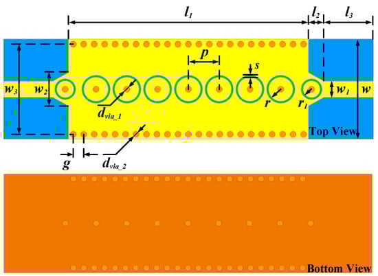 Substrate integrated waveguide (SIW) has been widely applied in the design of microwave circuits and antennas for its advantages of low loss, low profile, low crosstalk and so on [,,]. In this paper, based on the traditional SIW, a new type of SSPP structure is proposed through loading ring slots and vias. The bandpass filtering response can be obtained with the help of SIW’s high-pass characteristics, and the bandwidth can be easily tuned without increasing the size of the waveguide. Two BPFs using the proposed SSPPs with different bandwidths are fabricated and measured to validate the design idea.
