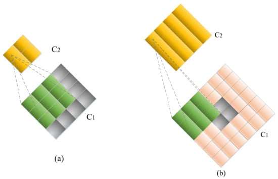 The deconvolution layer is also called the transposed convolutional layer. The main purpose of this layer is to upscale the LR image features into HR image features. The implementation principle of the deconvolution layer is shown in Figure 6. For deconvolution operation of the input feature map size of the order 2 × 2 with kernel size 3 × 3 and reconstructed output is 4 × 4. In the case of convolution operation, the input size is 4 × 4 with the kernel is 3 × 3 and the reconstructed output size is 2 × 2. Dark grey color represented input C and yellow color represented the reconstructed output C.