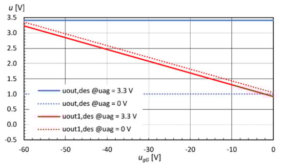 In contrast to derived equations, a trivial selection (uREF1 = uREF2 = 0) that comply with (15) but fails to maintain (18) above negative supply rail at ugG = 0 V was rejected from the beginning.