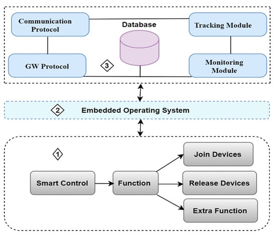A smart SDN based gateway is a server to manage both the home and foreign agents outside the network. The computer system within the IoT based agricultural networks are portal nodes in the big intelligent farming system. The general insight architecture of the IoT-SDN gateway is presented in Figure 3. A gateway-based connection hub with internal networks is embedded by an operating system. A portal is the complete form of a number of devices essential for the system’s interoperability as system translators. Sensing [27] devices connected with this gateway are smartly controlled by defining the devices’ functionality. OpenFlow as an SDN and LoRa as IoT communication protocols describe the routing rule system [28,29]. These protocols permit the transfer of information through any physical quantity between two or more communication nodes. If one device communicates with the others, they comply with the gateway protocol rules. The tracking module monitors the entire system with its operating system. The external devices are connected to the home network according to the algorithmic structure. All of the communication among the IoT-based smart devices and the network information management is stored in the database. SDN is deployed with the IoT devices for the foreign device’s control [30,31]. Thus, the SDN based IoT gateway has been established, where SDN plays a network management role over the IoT devices [32]. The foreign devices are managed based on this intelligent farming gateway system. When the foreign devices are hired in the smart farming system, the devices are joined according to the algorithm structure setting based on that farming system. If these devices are not joined by a proper method, these devices will be rejected or released to load the embedded operating system. Completing the registration process, the foreign devices load the embedded operating system with smart farming. Since a farming loaded operating system is enabled in these foreign devices, it must be controlled by a farming system. The monitoring module monitors the foreign with the help of a tracking module. The gateway module will help to exchange data among the foreign devices and home devices.