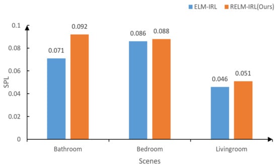 In order to illustrate the generalization performance of the regularized ELM-IRL, we conducted an experiment under task III and selected SPL as the evaluation metric. The results are shown in Figure 11. It can be seen that the performance of the ELM-IRL after regularization is better than that of ELM-IRL, which proves that the generalization ability of the model was effectively improved after regularization.