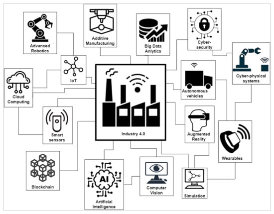The term “Industry 4.0” was raised to highlight the competitive strategy model of European Union industries with other international markets. The model integrates information and communication technology (ICT) and big data analysis into the industry [10]. It is realized through the convergence of the physical and digital worlds. I4.0 is based on the technological developments relevant to the physical, digital, and biological spaces across industries. In this sense, advances in artificial intelligence (AI), nanotechnology, quantum computing, synthetic biology, and robotics will rapidly substitute for the production technologies of the past sixty years. I4.0 revolution will create better prospects in today’s production process, including mass customization, flexible production, increased production speed, higher product quality, decreased error rates, optimized efficiency, and better customer proximity [11].
