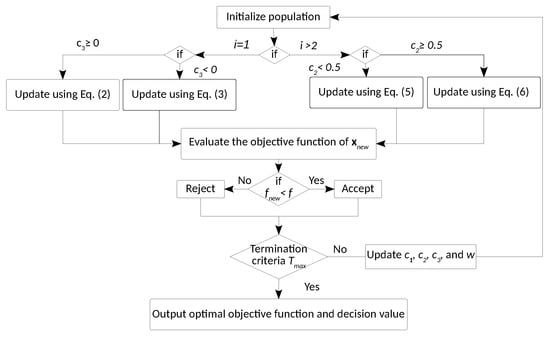 It is worth noting that the dimension of all vectors described above is the number of objective function variables. Figure 1 illustrates the flowchart of the SSA. f presents the best fitness getting from the previous iterations. The subscript new refers to the values of the current iteration.