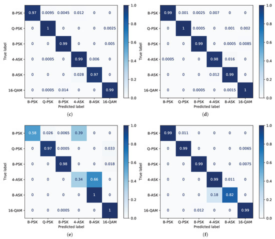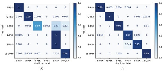 - Hassan, K.; Dayoub, I.; Hamouda, W.; Nzéza, C.N.; Berbineau, M. Blind digital modulation identification for spatially-correlated MIMO systems. IEEE Trans. Wirel. Commun. 2011, 11, 683–693. [Google Scholar] [CrossRef]