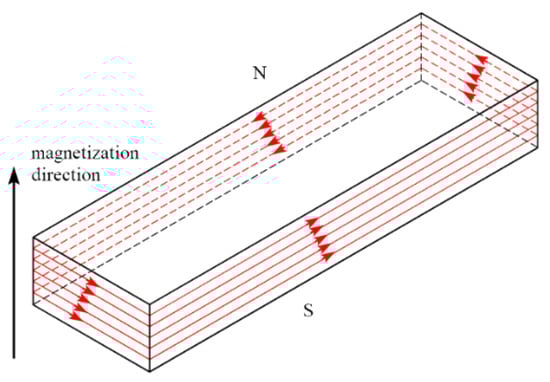 As shown in Figure 5, the MMF of the cuboid permanent magnet is equivalent to the sum of the currents flowing on the four lateral surfaces parallel to the magnetization direction. In addition, the current density of the current layer is numerically equal to the magnetic field intensity of the permanent magnet. MR is the internal resistance of the permanent magnet as defined by the following equation: