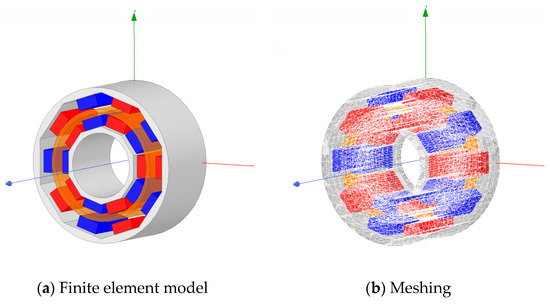 The FEM can discretize various different solution domains and can flexibly use element meshes of different structural shapes for division. Therefore, for models composed of multiple linear or nonlinear materials exhibiting complex structures and boundary conditions, the FEM can be applied to obtain a relatively accurate numerical solution. The material of the permanent magnet used in permanent magnet coupling is anisotropic. In addition, multiple materials are connected in a straight or curved manner, and the eddy currents are unevenly distributed. Thus, the FEM is suitable for solving the three-dimensional (3D) transient field of permanent magnet coupling to obtain its transmission torque.