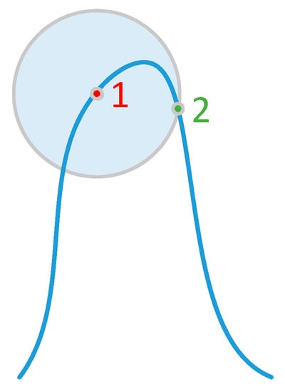 In practical applications, the deployment environment of WSN nodes is primarily mountainous terrain with large undulations and irregularities, where the coverage of nodes is easily affected by the terrain. In this case, using the traditional spherical coverage model will cause an error between the real coverage and the calculated results. Suppose that the node is deployed at position 1 using the traditional spherical coverage model. In this case, point 2 can be covered in Figure 3, but the actual situation is that the terrain occludes the coverage blind area, and electromagnetic waves cannot cover the two points.