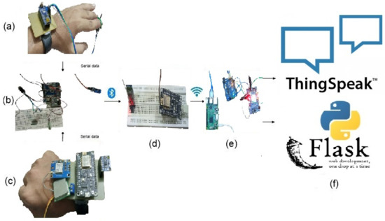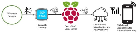 - Wearable sensors, master–slave Bluetooth, and Wi-Fi-based IoT framework for physiological parameters acquisition and transmission to the server and cloud;