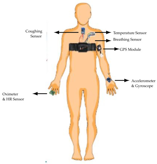 - Karthickraja, R.; Kumar, R.; Kirubakaran, S.; Manikandan, R. COVID-19 prediction and symptom analysis using wearable sensors and IoT. Int. J. Pervasive Comput. Commun. 2020. [Google Scholar] [CrossRef]