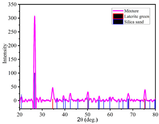 X-ray Diffraction (XRD) of laterite green and silica sand.