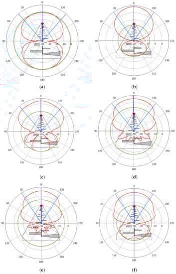Figure 18 shows the polar plots of the simulated E-plane radiation pattern of the improved PLPDA design at (a) 0.4 GHz, (b) 0.8 GHz, (c) 2 GHz, (d) 4 GHz, (e) 6 GHz, and (f) 8 GHz, respectively. It also suggests that the antenna demonstrates stable radiation patterns across the frequency bandwidth.