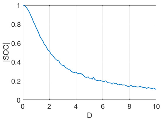 We calculated that the value range of the SCC satisfied using the Schwartz inequality. The trend of the SCC versus the noise intensity without the SR system is shown in Figure 6. As shown in Figure 6, we observed that the larger the SCC is, the more similar the frequency spectrum of the two signals is. In SR, the closer the value of the SCC to 1, the better.