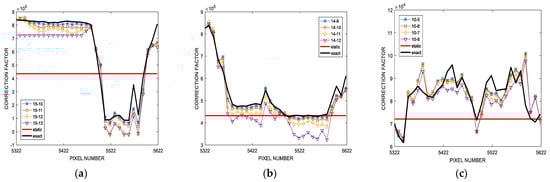 The correction factor updating process for a 7 × 7 convolution applied on the airplane benchmark: (a) NT1 = 15, (b) NT1 = 14, (c) NT1 = 10.