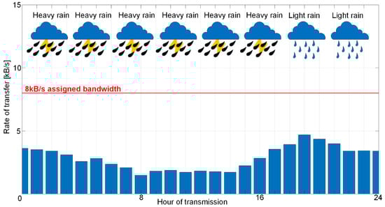 Drop in the transfer rate is obvious in comparison to Figure 9 during favorable weather conditions of about 40–50%.