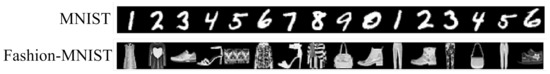 - Xiao, H.; Rasul, K.; Vollgraf, R. Fashion-mnist: A novel image dataset for benchmarking machine learning algorithms. arXiv 2017, arXiv:1708.07747. [Google Scholar]