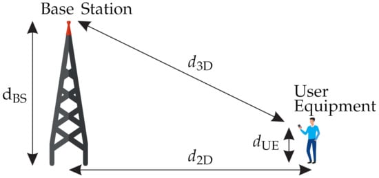 We begin by considering an ideal scenario in which the CSI is perfectly known to the nodes in the network. We implement the 5G channel model as described in 3GPP TR 38.901 [17] and accordingly define the deterministic model for the channel gain using the definition of height and distance as illustrated in Figure 3. The concerned model is also considered in [24], which analyzes FR2 propagation in the range of 0.5–100 GHz.