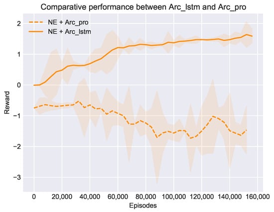 Comparative performance between Arc_pro and Arc_lstm with the same NE method in training against the TP opponent.