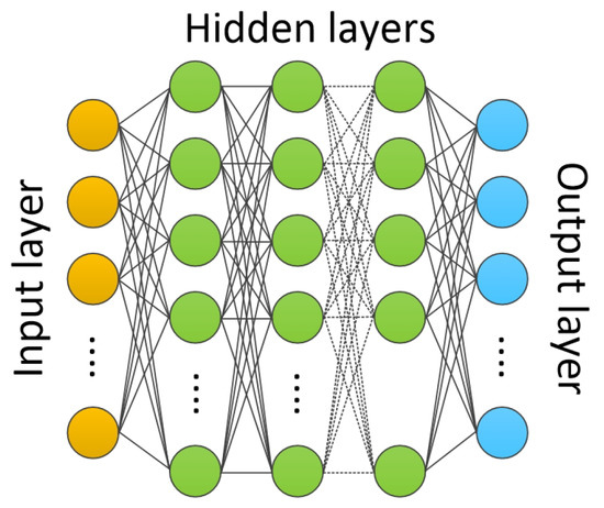 Deep Neural Networks (DNNs), as a branch of Artificial Intelligence (AI), are rapidly growing in both academia and industry, showing superior advantages in different domains such as pattern recognition, speech recognition, image classification, and computer vision [83,84]. They are also opening the path to new critical domains as E-health, self-driving cars, and surgery robots, where high precision and safety are the highest priority. As shown in Figure 8, a DNN is composed of a number of neurons, arranged in layers as input, output, and hidden layers, where each neuron performs a simple Multiply-And-Accumulate (MAC) operation.