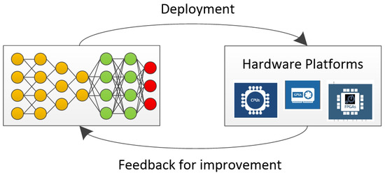 There are several popular platforms with which to execute DNNs such as Central Processing Units (CPUs), Graphics Processing Units (GPUs), and Field Programmable Gate Arrays (FPGAs) [85]. Application-Specific Integrated Circuits (ASICs) are also experiencing increasing popularity in DNN computation as they can offer optimized performance and power efficiency. Many-core systems-on-chip (MPSoCs) are another platform providing flexibility for the communication among neurons. These platforms can be embedded into a system, called embedded systems, to perform a specific task. Various attempts have been conducted so far to improve the efficiency of such platforms for DNN applications, either targeting the training or inference phase [86]. Concerning IoT devices, the inference phase is of our interest, where the trained model is deployed on the device. The computations in the inference phase can be optimized using frameworks such as Tensorflow Lite, TensorRT, XLA, AMP, and Arm NN. These frameworks try to bridge the gap between the DNN models and the underlying hardware platforms. Among them, TensorflowLite and TensorRT are the engines targeting IoT and embedded devices.