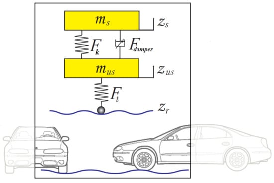 The (simple) quarter car model is usually represented as in Figure 3 and is composed by the following components: