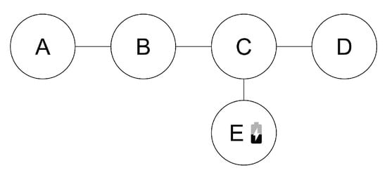 For the Agent in a Box to be useful to users, it needs to be able to complete domain-specific missions. These missions need to be implemented so that they can be interrupted and resumed by other plans in the framework as needed. To illustrate this point, consider a simple example. Assume that an agent is at location A in the environment shown in Figure 7 and has been given the goal of moving to location D. This is easily achieved using the navigation plan discussed in the previous section by adopting the goal of !navigate(D). To achieve !navigate(D), the agent adopts achievement goals for !waypoint(B), followed by !waypoint(C), and !waypoint(D). What if the mission is complicated by adding an additional challenge to this scenario, such as the agent realising that it needs to charge its battery at a station located at E after having already adopted its waypoint goals? Fortunately, the behaviour framework provided by the Agent in a Box includes resource management behaviour. Although the details of this behaviour will be discussed in more detail later, in Section 4.3.4, one can presume that the agent should navigate to location E to charge its battery before moving to location D. The issue is that, once the battery has been recharged, the agent’s intention queue will still contain the waypoint goals for moving the agent from location A to location B, and so on, however the agent is now at location E; the agent’s mission context has changed. This means that the agent needs to regenerate these goals based on this new starting location.