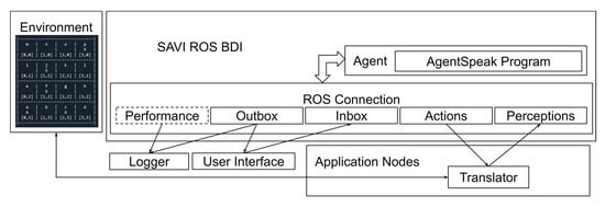 Davoust et al. [46] identified an impedance mismatch problem [47] stemming from the differences in how BDI frameworks connect to their environments, and software simulators that lack the sophistication for modeling BDI agents. Impedance mismatch refers to the “conceptual and technical issues faced when integrating components defined using different methodologies, formalisms or tools” [46]. To resolve this problem, Davoust et al. proposed the Simulated Autonomous Vehicle Infrastructure (SAVI) architecture, which connected Jason agents to a custom simulation by decoupling the agent reasoning cycle from the simulation cycle [46]. Recognising that a similar challenge exists for connecting BDI agents to robotic systems, this Agent in a Box architecture uses the SAVI ROS BDI, which built on the solution proposed by the SAVI project, for connecting a Jason BDI agent to ROS. This software is available open source on GitHub [48].